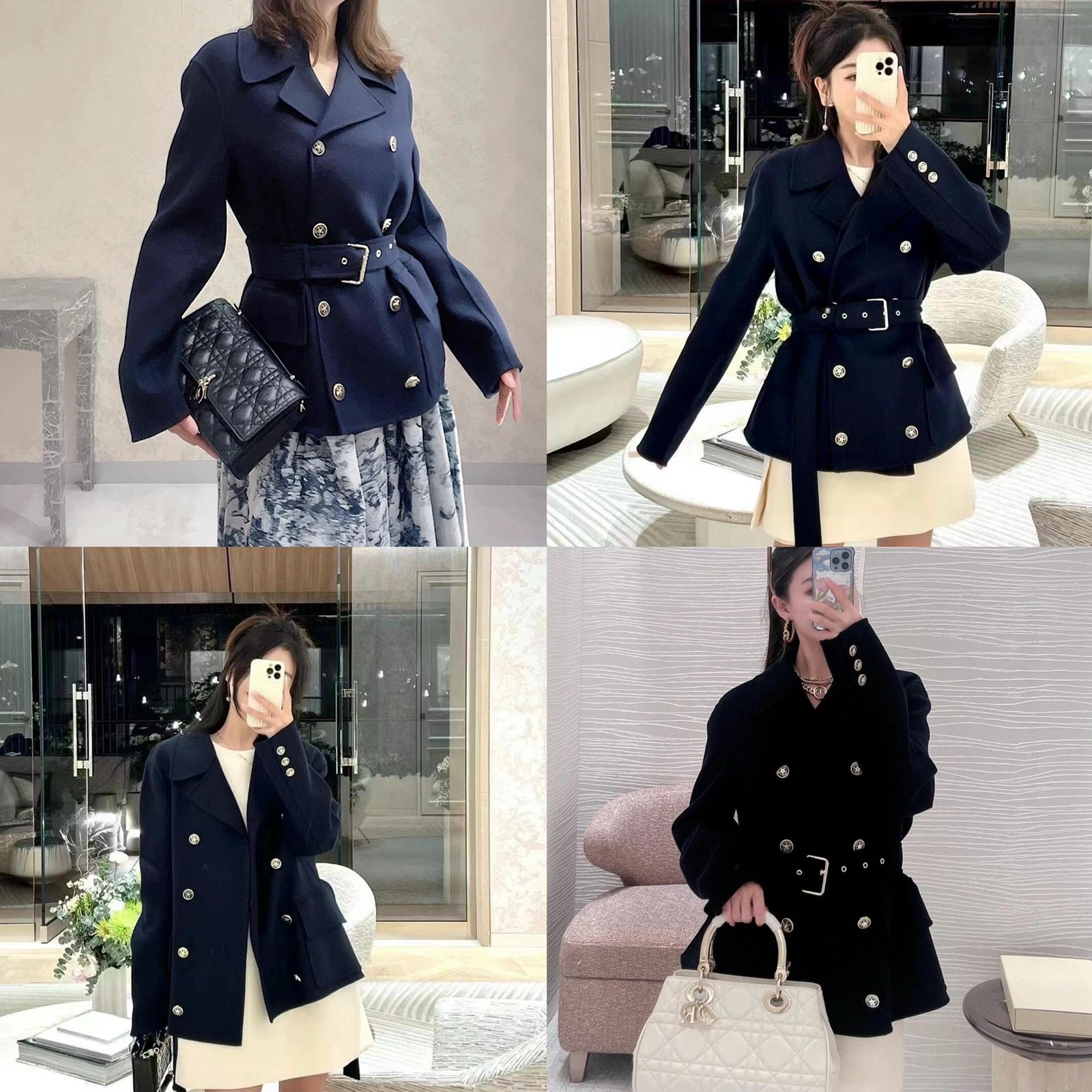 Dior 雙面羊毛呢翻領短款外套定制五角星雙排扣 搭配腰帶