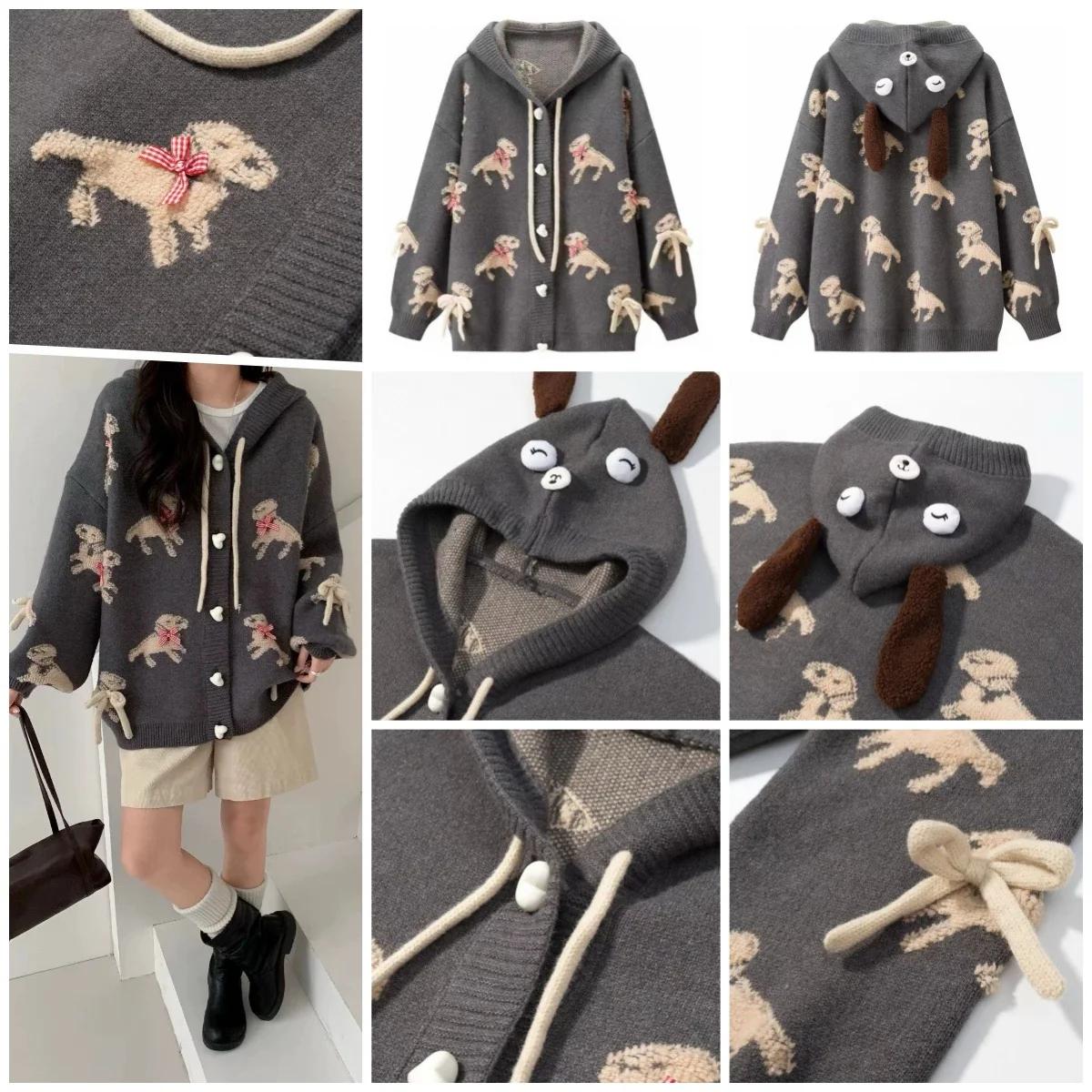 卡通小狗蝴蝶結連帽開襟冷衫