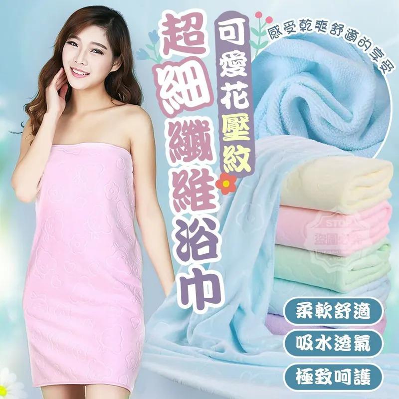 可愛花壓紋柔軟舒適超細纖維浴巾(1套5條顏色隨機)