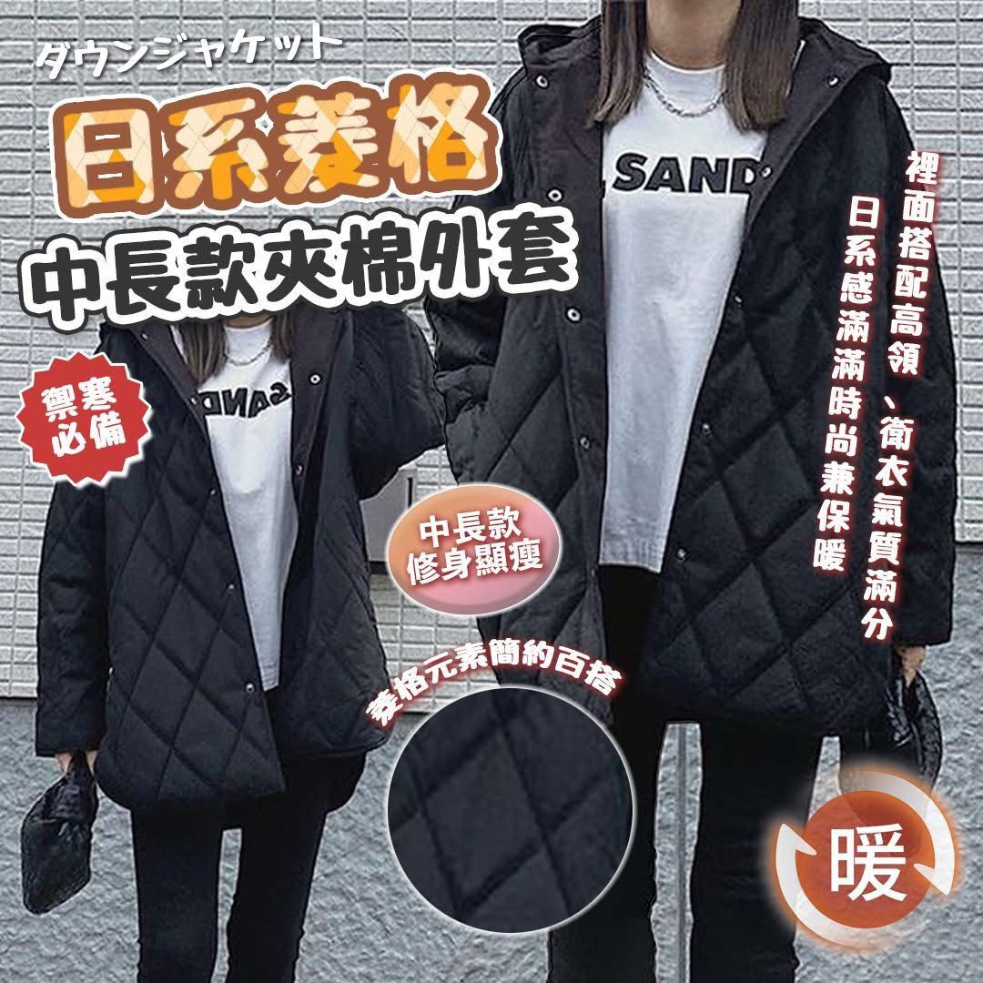 日系菱格中長款夾棉外套🧥