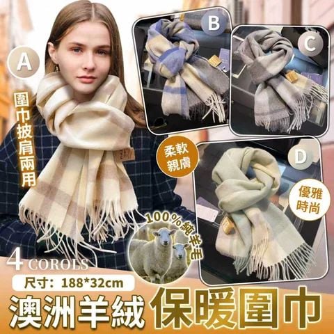 澳洲🇦🇺100%純羊毛圍巾(188 x 32cm)