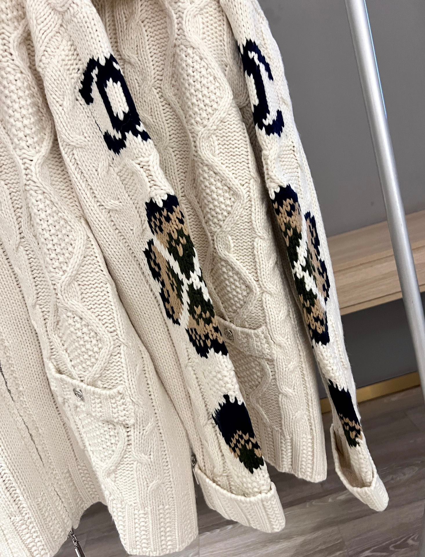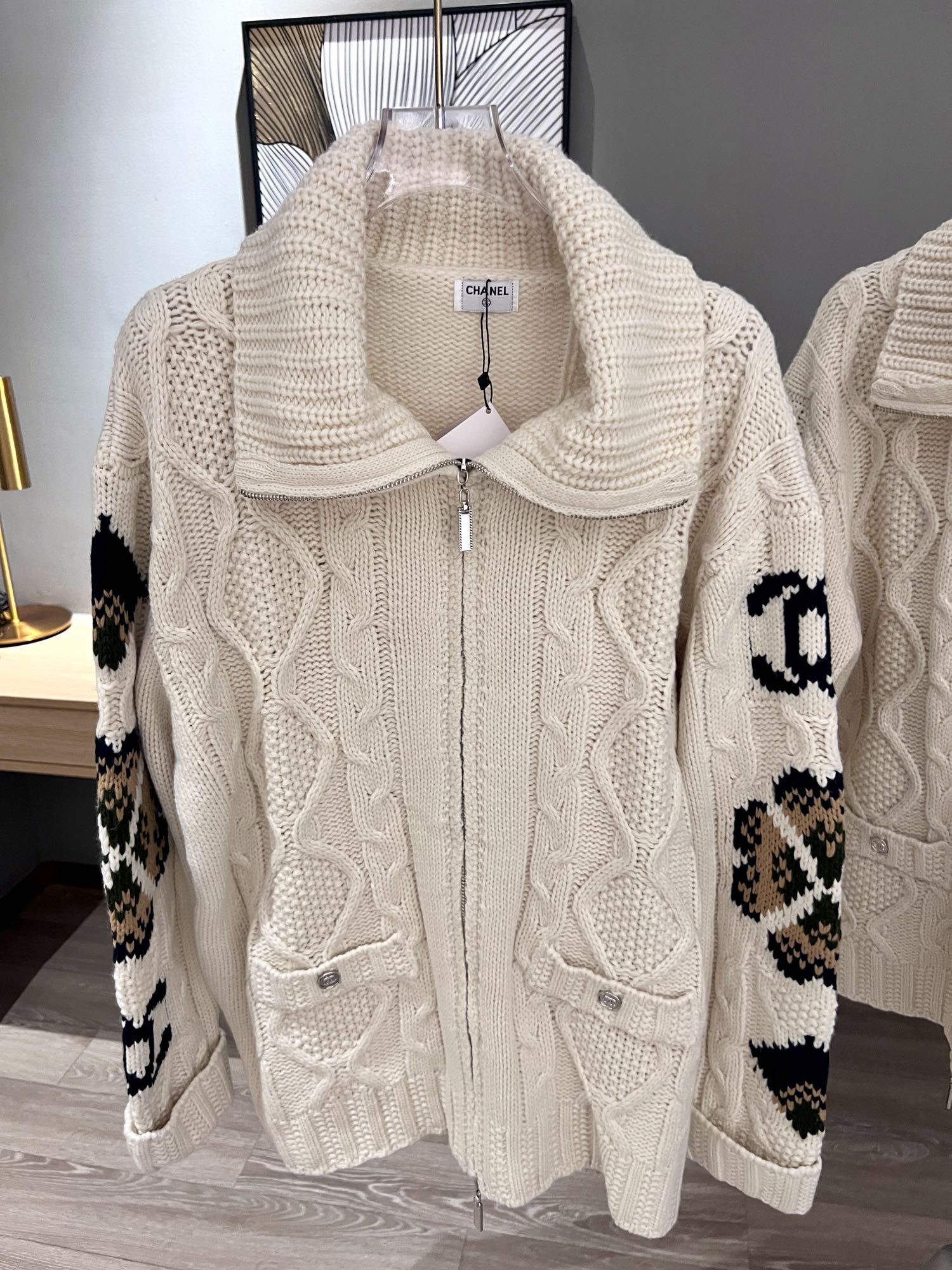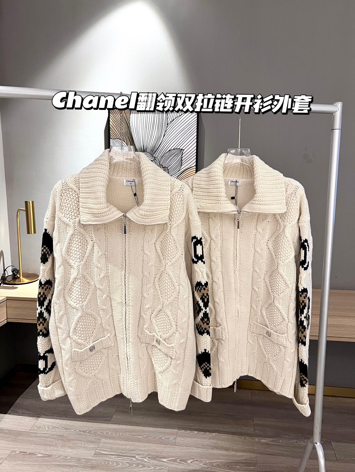 Chanel滑雪系列鈎花針織翻領雙拉鍊開衫外套