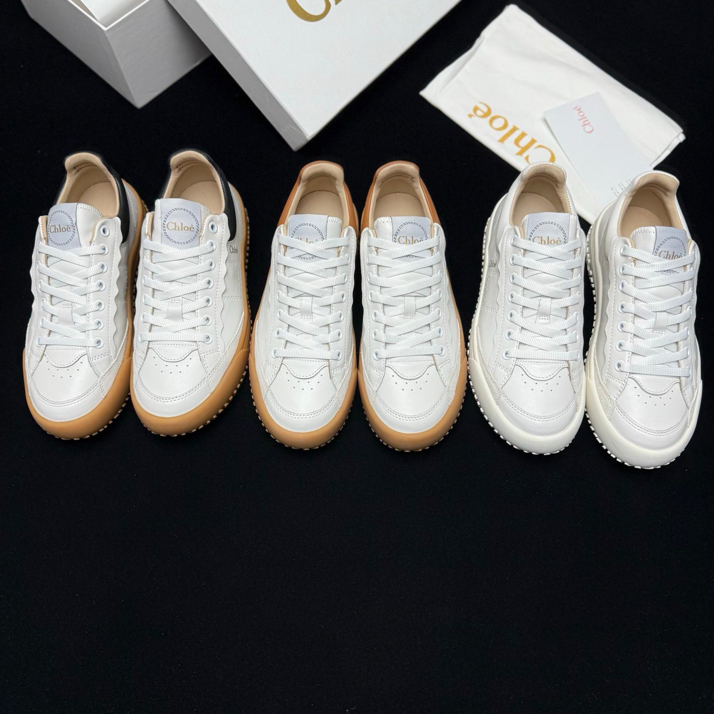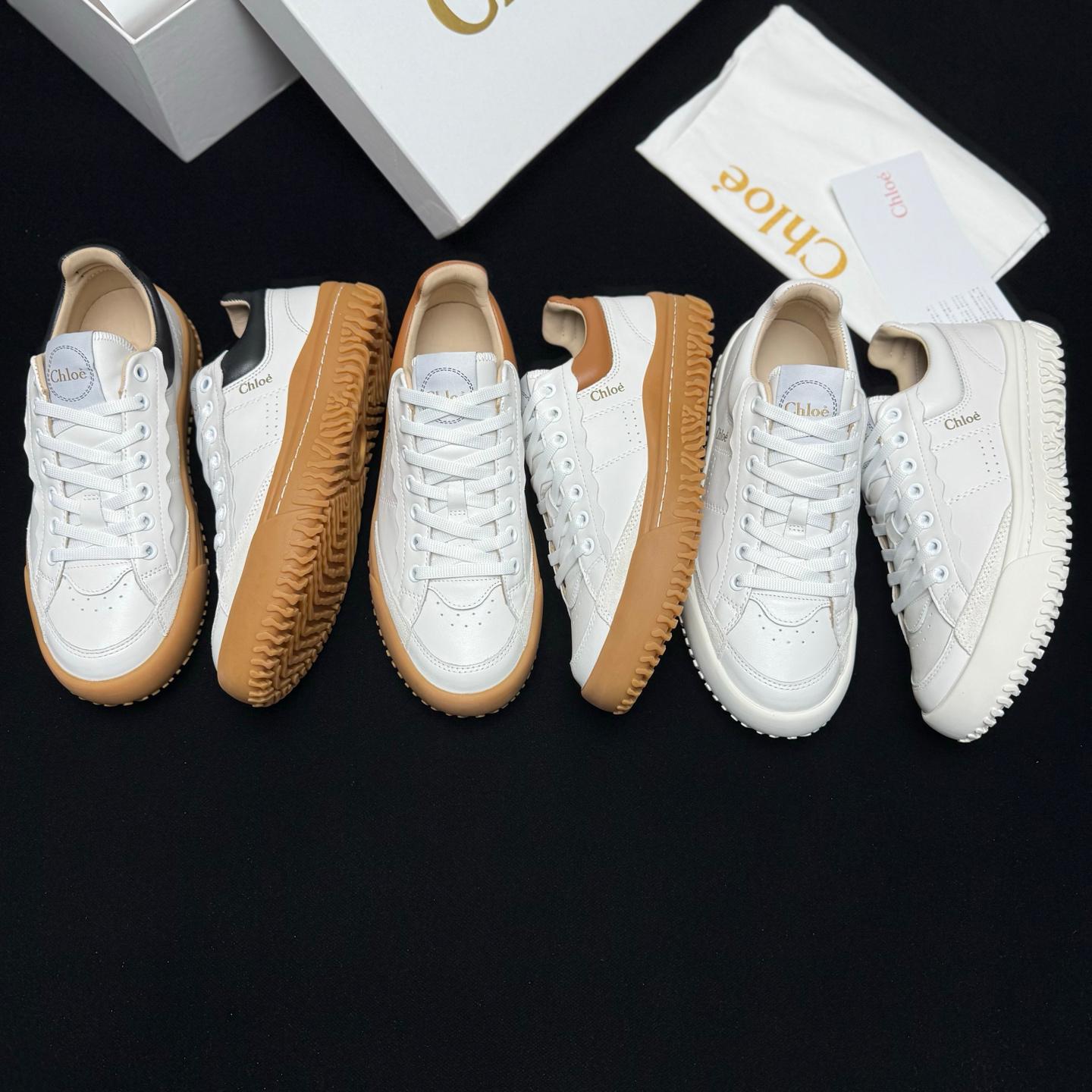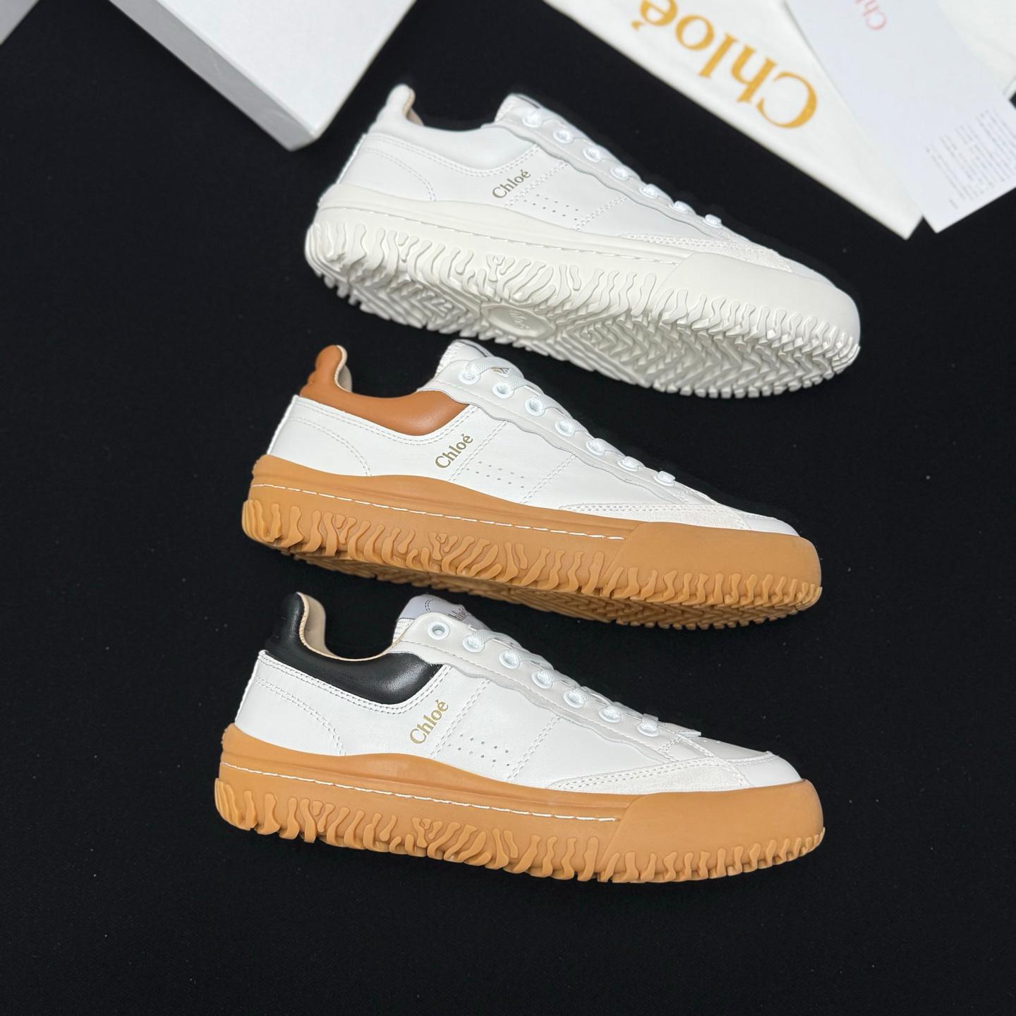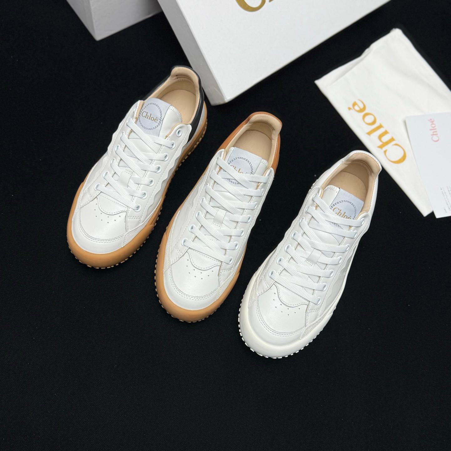 Chloe拼色復古小白鞋