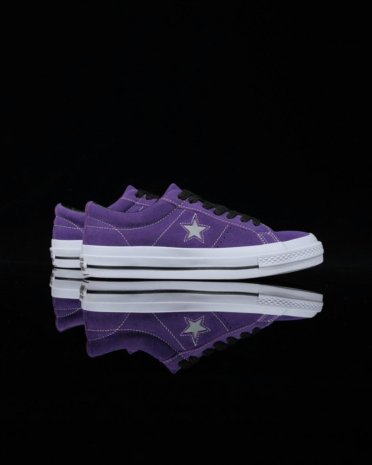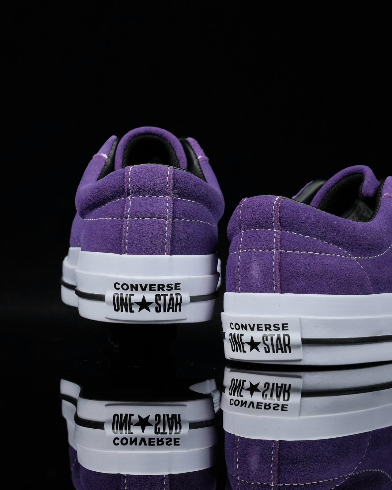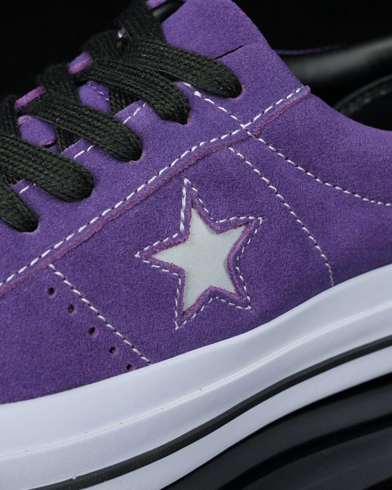 Converse One Star 經典白紫木村一星3M反光版 翻毛皮復古滑板鞋