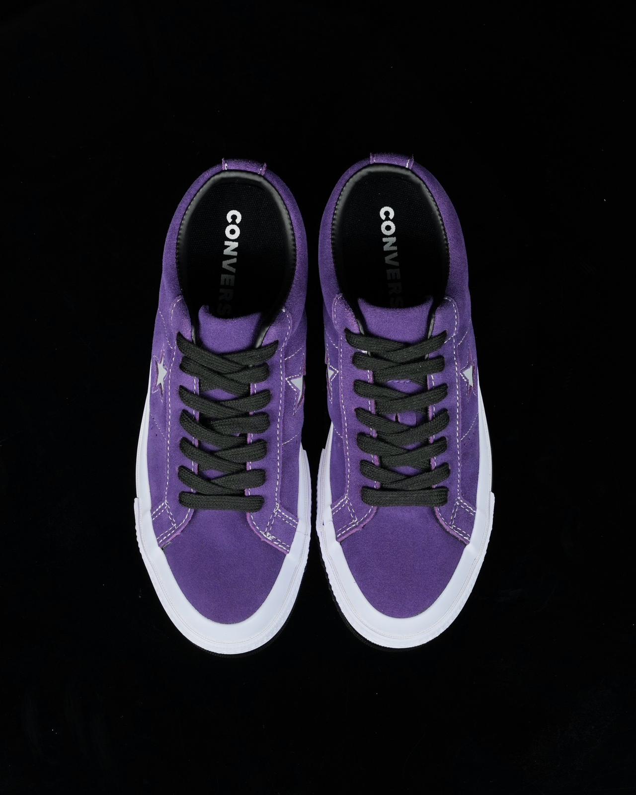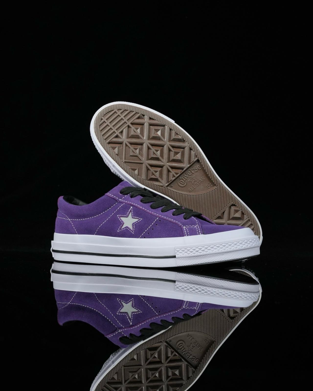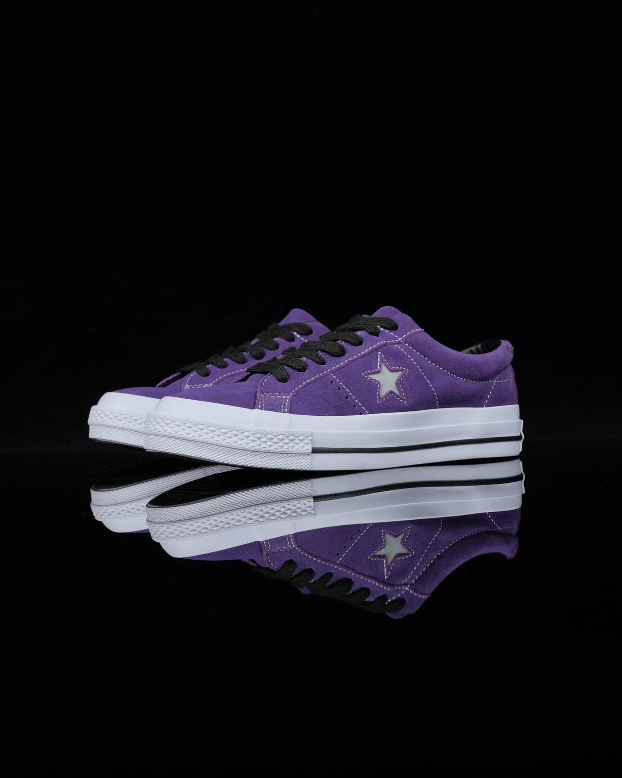 Converse One Star 經典白紫木村一星3M反光版 翻毛皮復古滑板鞋