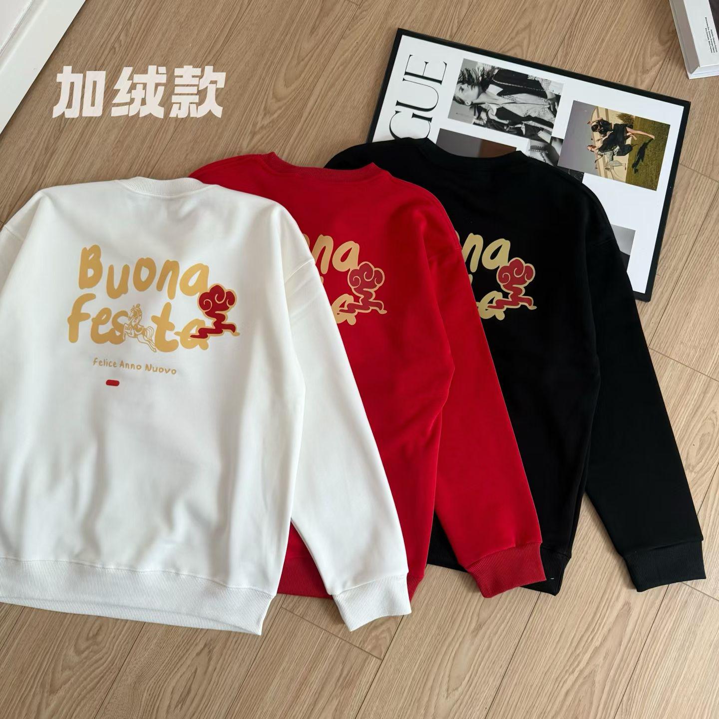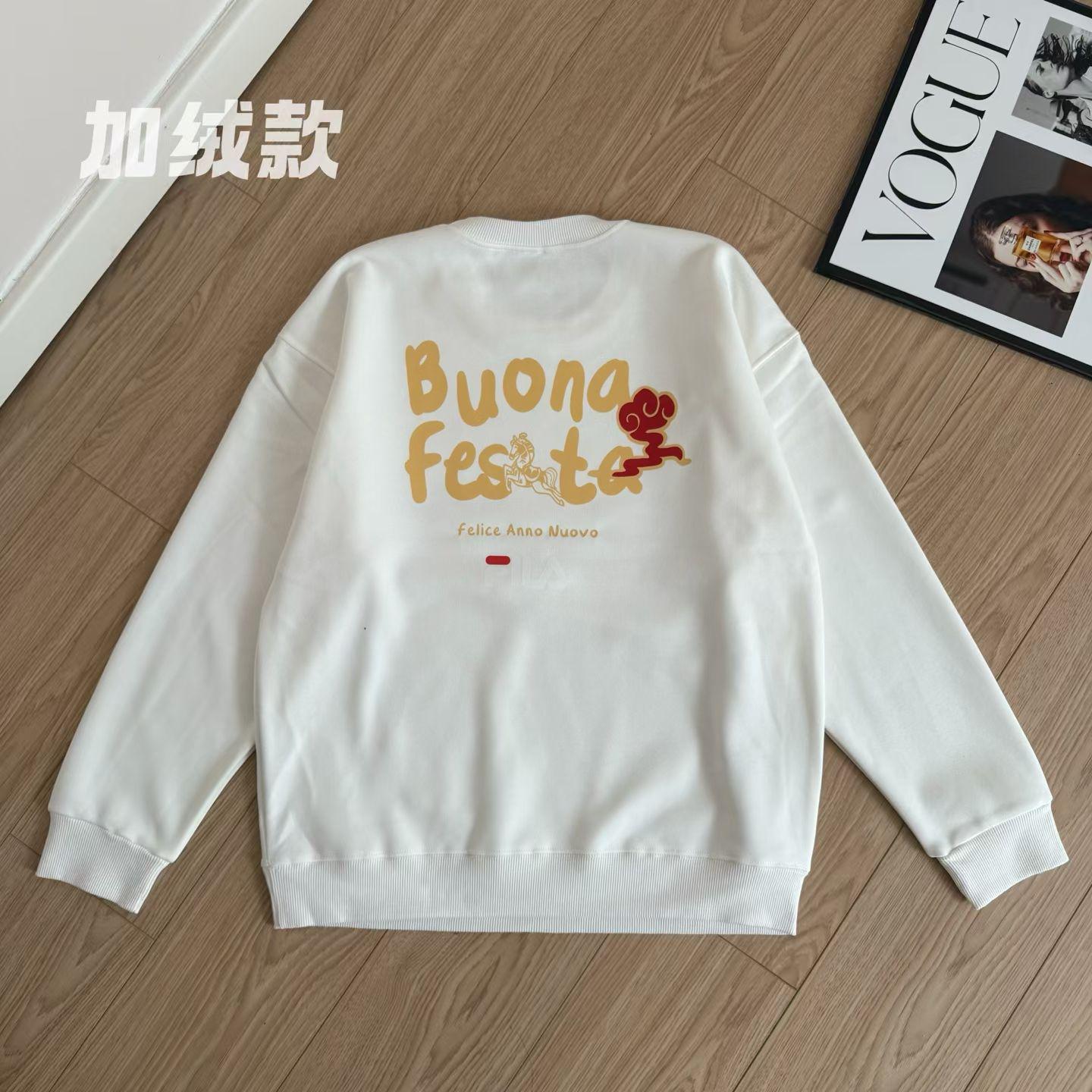 FILA馬年新春系列字母印花圖案 圓領加絨套頭衛衣
