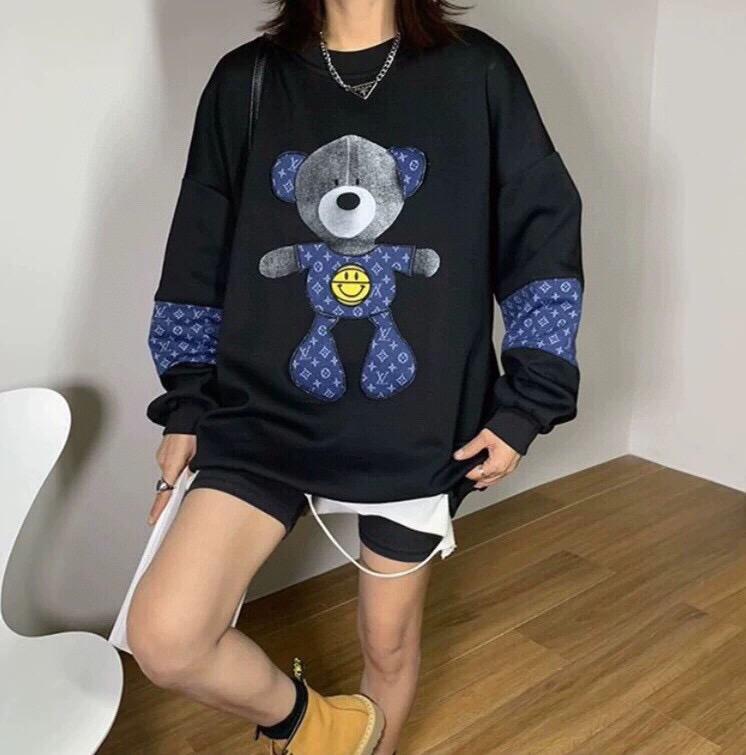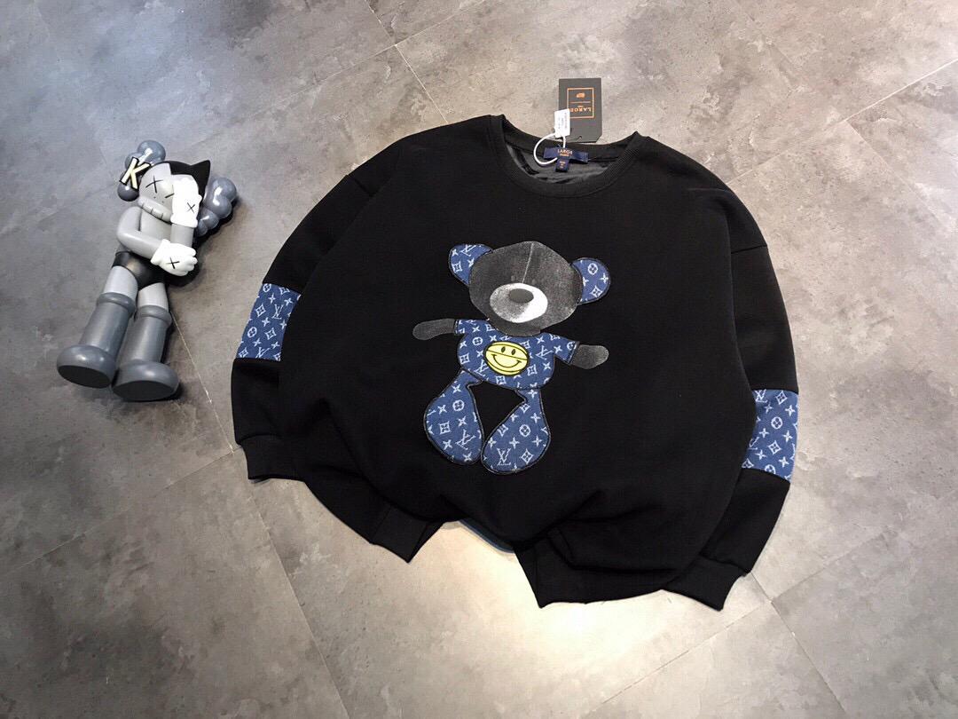 LV字母牛仔拼接泰迪熊加絨衛衣
