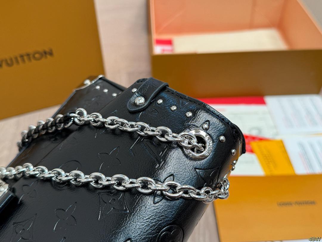 黑色壓花 + 銀色金屬鏈條 = 簡直是酷女孩的必備元素。實物高級到想尖叫,把黑色玩到了極致:不浮躁、不高調,但所有細節都在悄悄說“我很貴”。